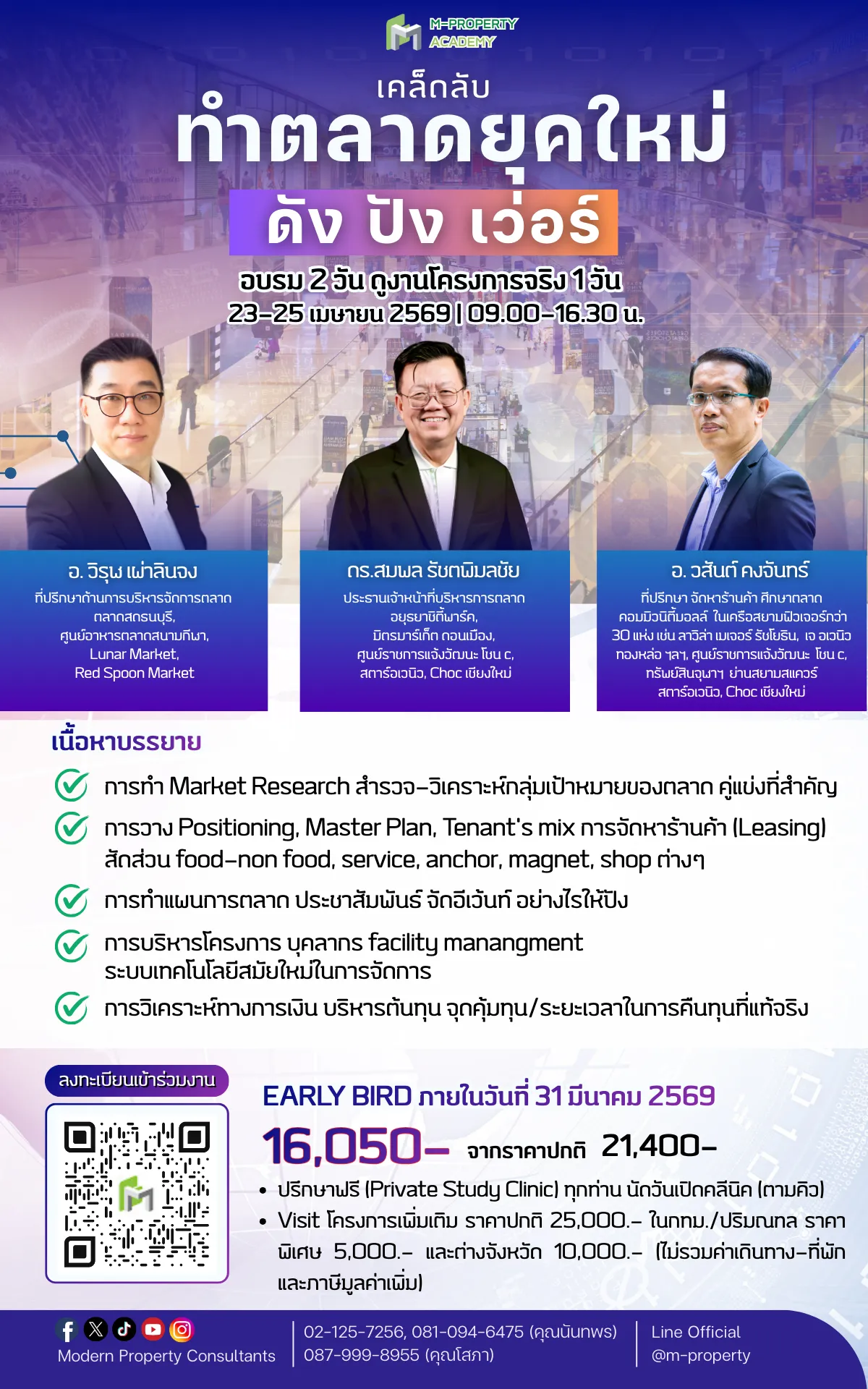 ▶️ early bird ภายในวันที่ 15 มีนาคม 2569 ไม่รวมค่าอาหารกลางวัน (ตามอัธยาศัย ใน community mall)