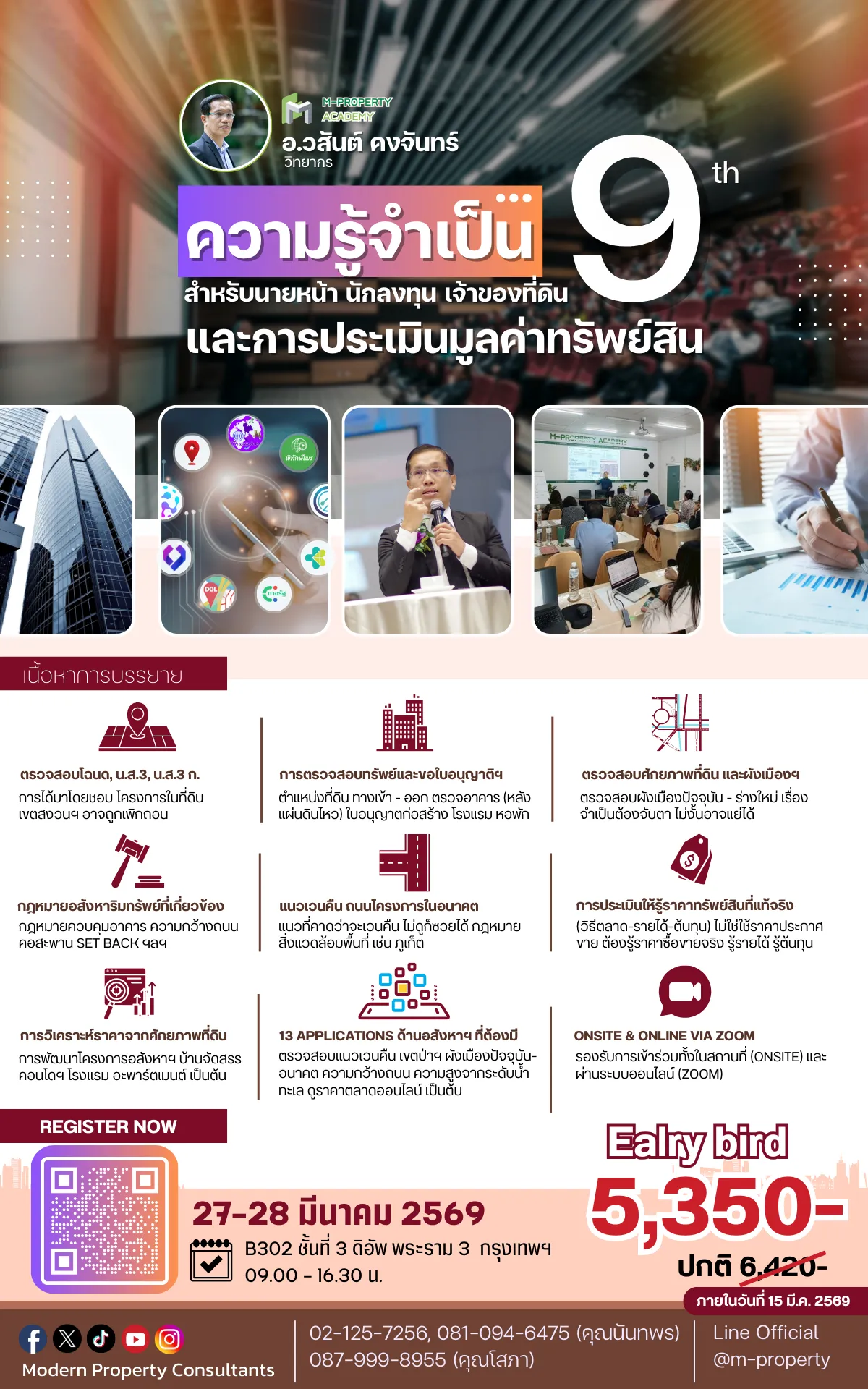 ความรู้จำเป็นสำหรับนายหน้า นักลงทุน เจ้าของที่ดิน และการประเมินมูลค่าทรัพย์สิน รุ่นที่ 9